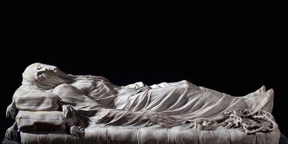 To achieve this, the polyhedric and mysterious Prince, notable for experimenting in the fields of Art and Science, expressed a strong desire to commission a sculpture of Jesus’s body after the crucifixion which, as he envisioned it, was to be covered by the thinnest of veils.