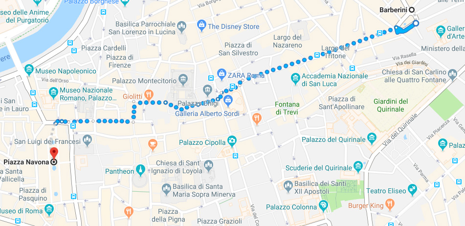 If your accommodation is located in Rome city center you can get to Piazza Navona and Campo de’ Fiori by foot. It will be a great walk through some highlights of the city! Otherwise, if you prefer to move by bus there are loads of them stopping in the proximity of the square like numbers 46, 62, 64, 81, 87, 492, 628 and others it depends on which is your starting point, just double check on the ATAC website to be sure. From Termini station you can take the 64 and then get off in Corso Vittorio Emanuele , it will take just 5 minutes to reach the square. Unfortunately there is no underground station at Navona square, but you can take the A line (the orange one) and get off at the Barberini stop. Then just walk for almost 20 minutes through the magnificence of Rome.